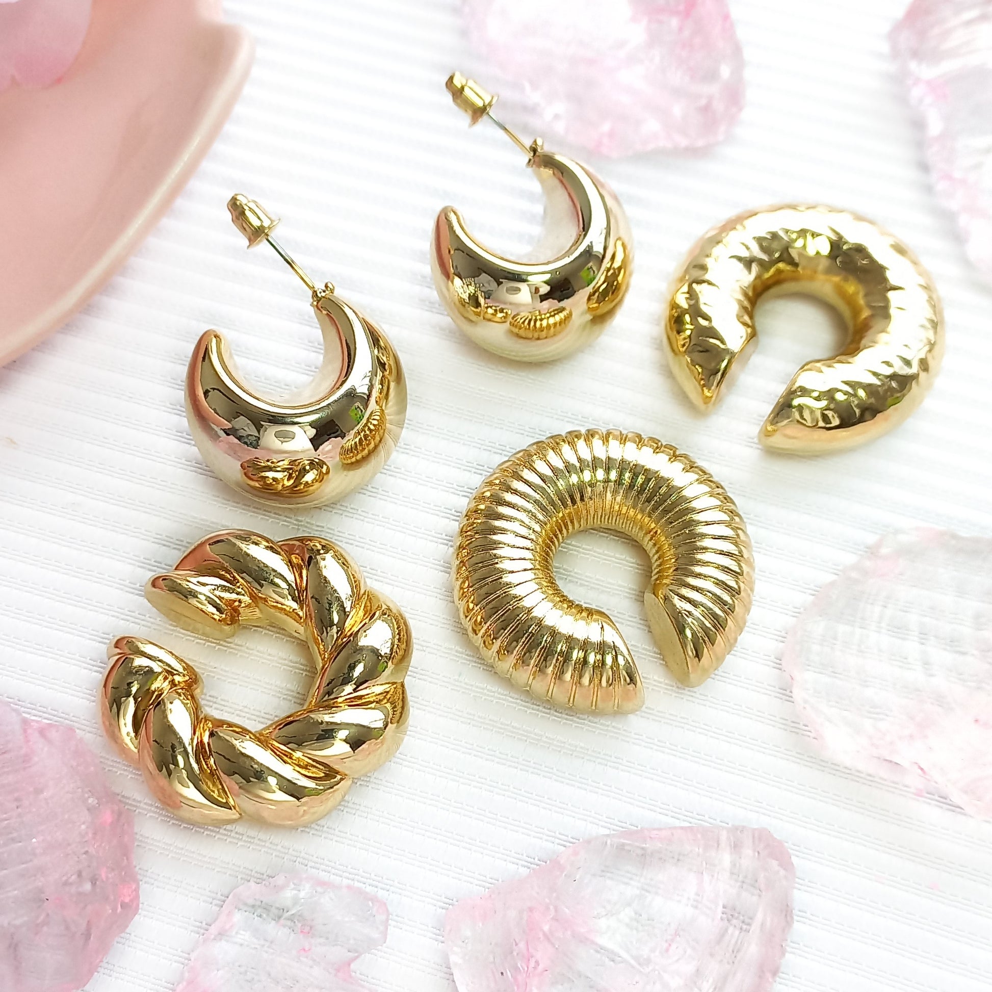 La colección incluye aretes con formas únicas que varían desde la clásica media luna hasta diseños más contemporáneos y trenzados. Esta diversidad te permite expresar tu personalidad y adaptarte a cualquier ocasión, ya sea un evento formal, una cena con amigos o un día casual. Además, el peso ligero de los aretes garantiza una comodidad excepcional durante todo el día, permitiéndote lucir fabulosa sin sacrificar la comodidad.